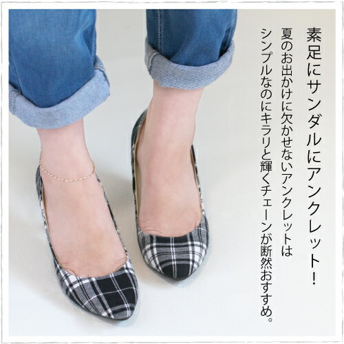 夏のお出かけに欠かせないアンクレットはシンプルなのにキラリと輝くチェーンが断然おすすめ! 反射する面が多いので角度によって輝きが変わります。